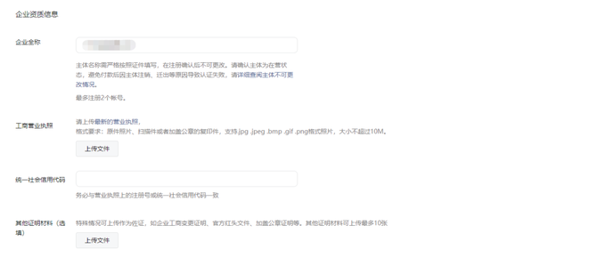 第三步:选择认证类型及填写认证资料