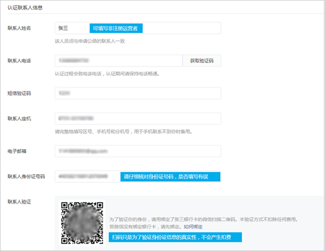 3)联系人信息填写