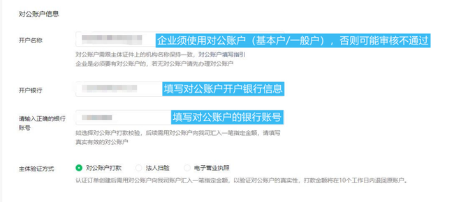 2)对公银行账户信息